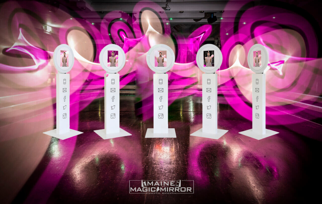 Step into the future of interactive photo experiences with Magic Glass. This next-generation booth, affectionately known as the Mirror X Booth, commands attention with its 6-foot tall, all-mirror design that radiates a “WOW” factor from every angle. Crafted for prominence and practicality, Magic Glass merges sleek aesthetics with high-performance technology.
